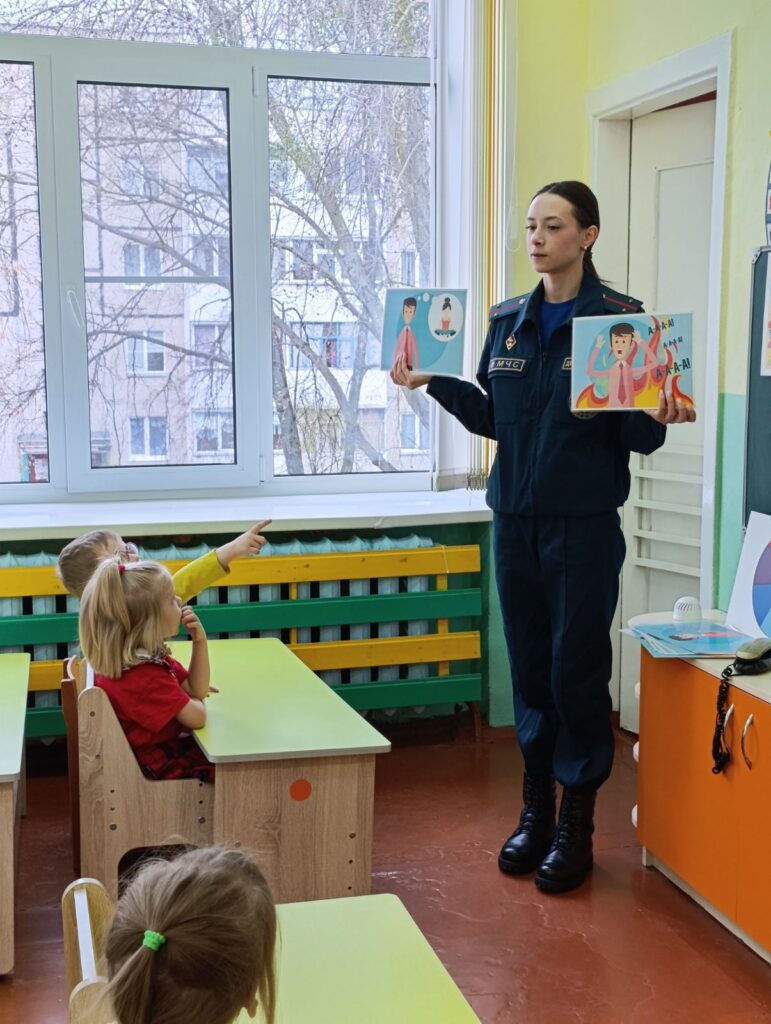 В нашем детском саду прошла встреча воспитанников старшей группы 8 с инспектором МЧС Линой Сергеевной Демьяненко. Лина Сергеевна провела познавательную беседу по основам безопасности жизнедеятельности. Детям напомнили о том, как себя вести в случае обнаружения пожара и повторили номера экстренных служб.